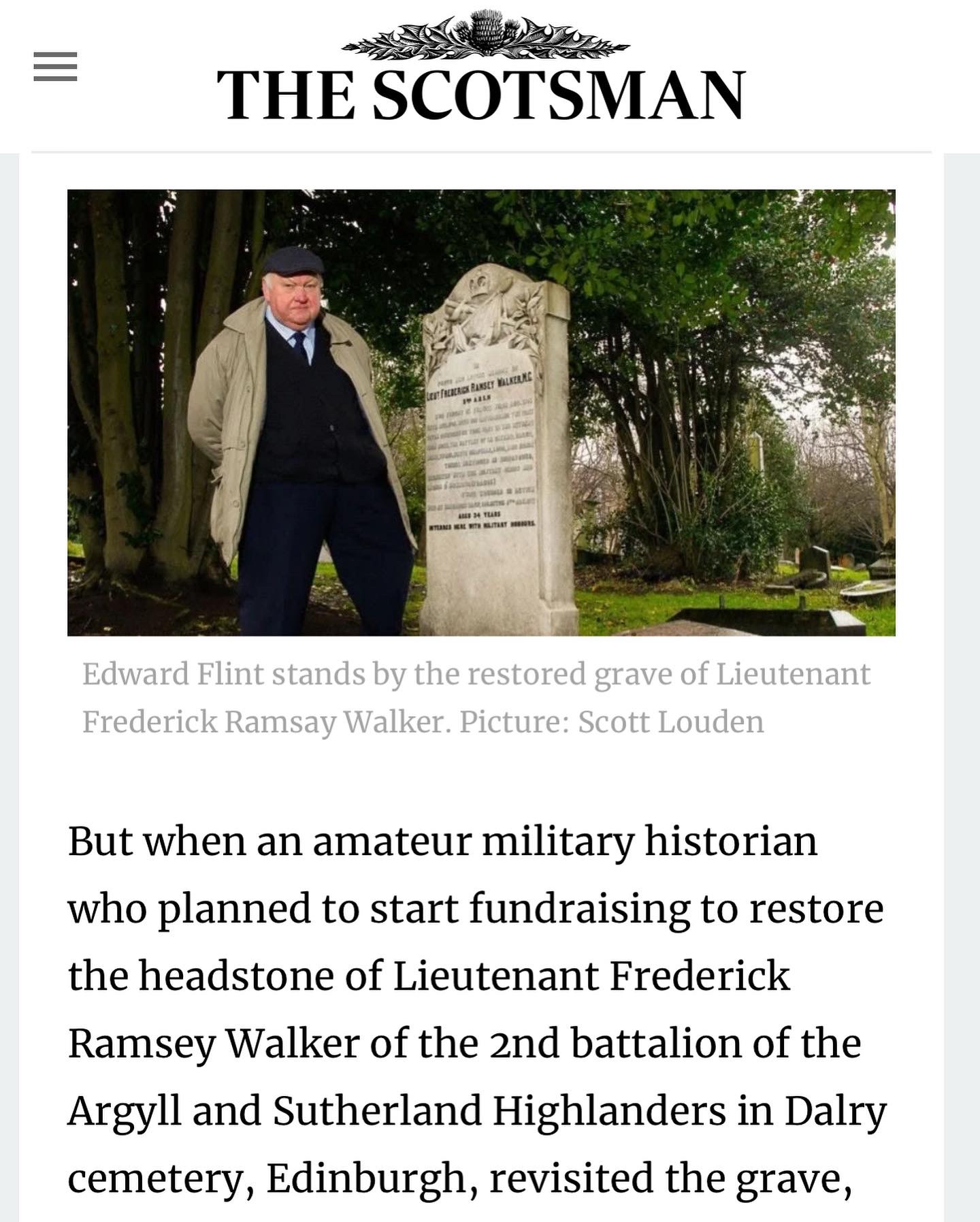 Looking through my archive last night, I came across my photo of his grave again and did some online research. I found newspaper articles (swipe through for pics) that reported retired civil servant and amateur historian, Edward Flint, sparked the initiative to restore Lieut. Walker’s grave.